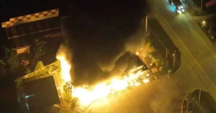 Cảnh cháy tại trạm xăng bị đánh bom ở miền Nam Thái Lan